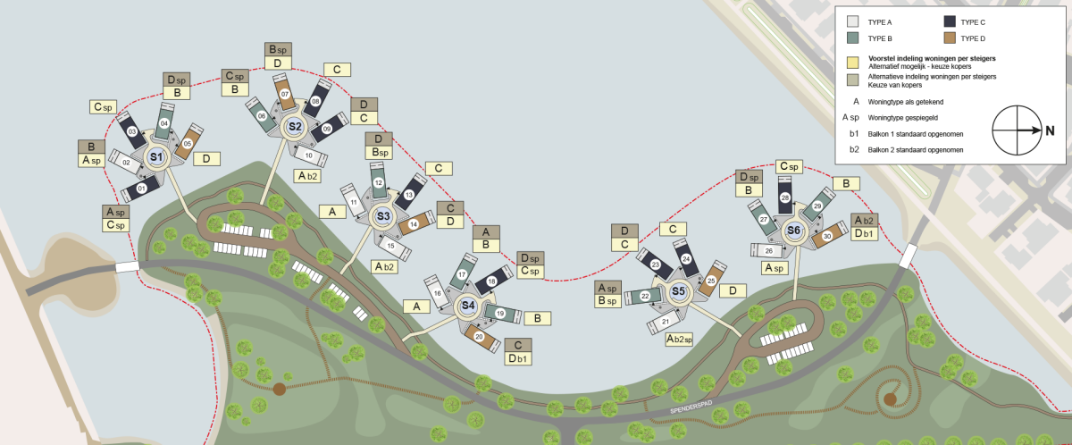 Wonen op en aan het water is een belevenis die met niets te vergelijken is. Vanaf de oever loop je over de toegangsbrug naar één van de drijvende waterhoven. Hier ligt jouw waterwoning fraai aangemeerd. Vanaf je steiger heb je een fenomenaal uitzicht over de plas, een heerlijke plek om te zonnen of een frisse duik te nemen. ’s Avonds geniet je hier van een magistrale zonsondergang die het water diepblauw kleurt.